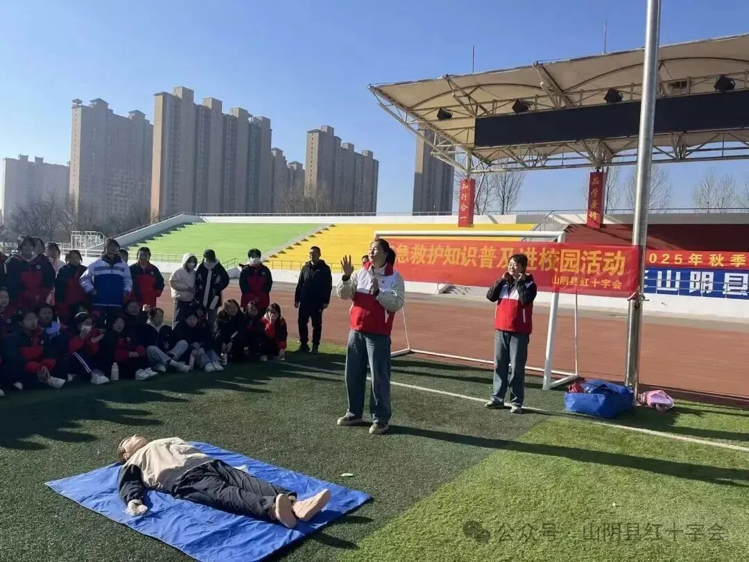 12月9日,阳光轻柔地洒在山阴一中的操场上,一场意义非凡的急救知识培训活动在此开展。山阴县红十字会的培训老师为同学们带来心肺复苏(CPR)与自动体外除颤器(AED)急救知识普及课程。